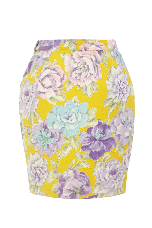 Alberta Ferretti beige skirt with purple flowers. Floral Geoprint