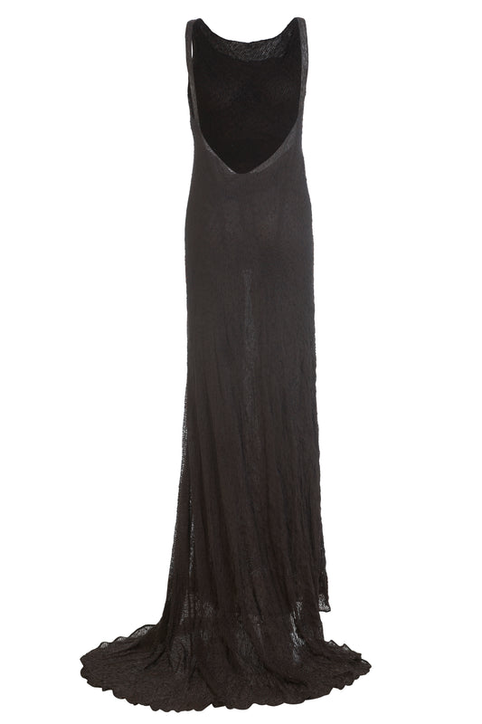 Balenciaga dark blue silk summer dress with lace overlay. Preloved