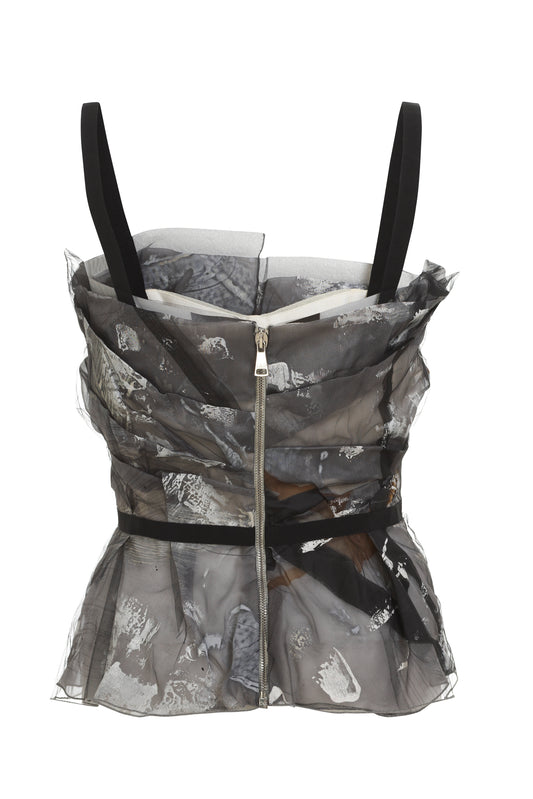 Alma white sleeveless top with draped blue crystal beading. Vintage