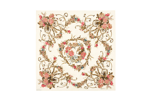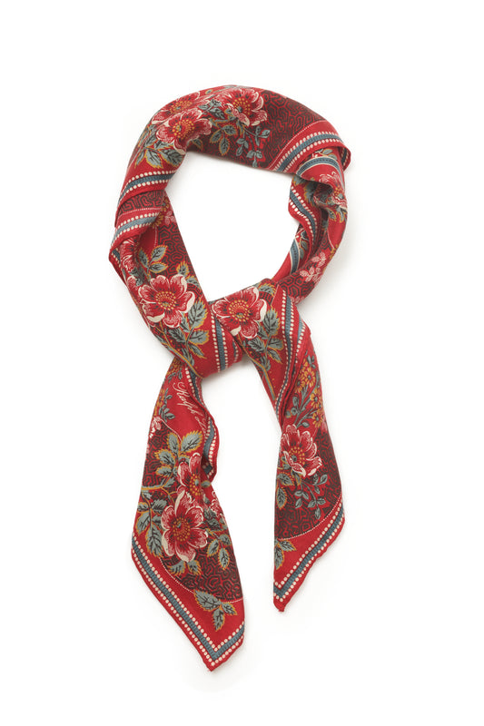 Ralph Lauren cream silk scarf with red and blue floral motif