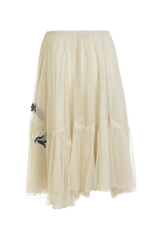 Gianni Versace Couture apple green skirt with floral lace overlay