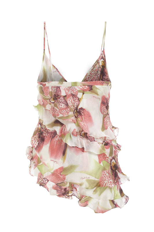 Roberto Cavalli pink and green sleeveless top with ruffles