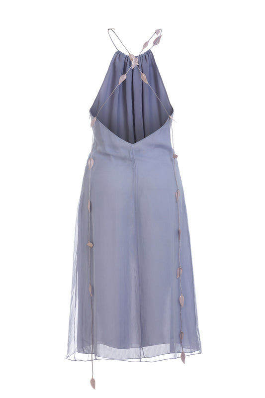 Valentino Miss V purple dress with mauve leaf tie accessory