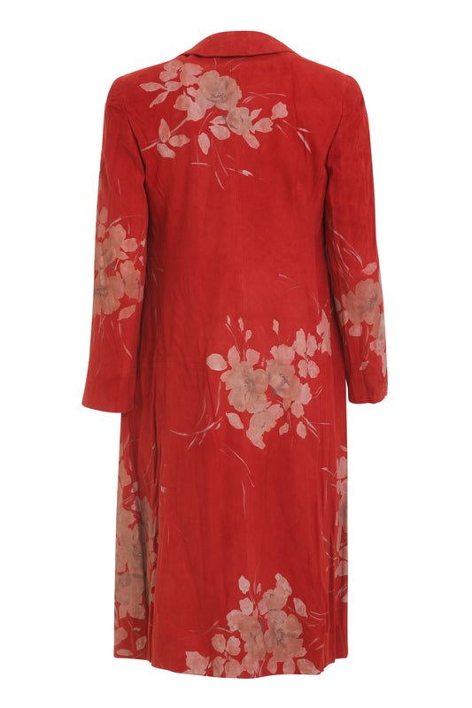 Valentino Boutique red suede coat with floral imprinted detail
