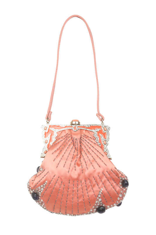 Valentino Garavani shell shaped coral satin mini bag with crystal applique