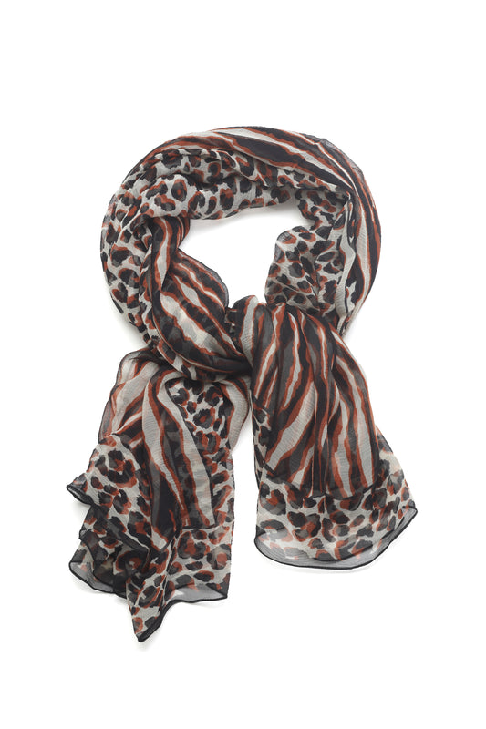 YSL Yves Saint Laurent black, bronze and white animal print silk scarf