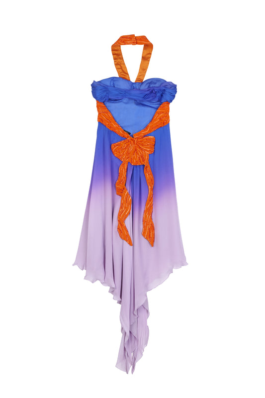 Roberto Cavalli purple, pink and orange cocktail dress
